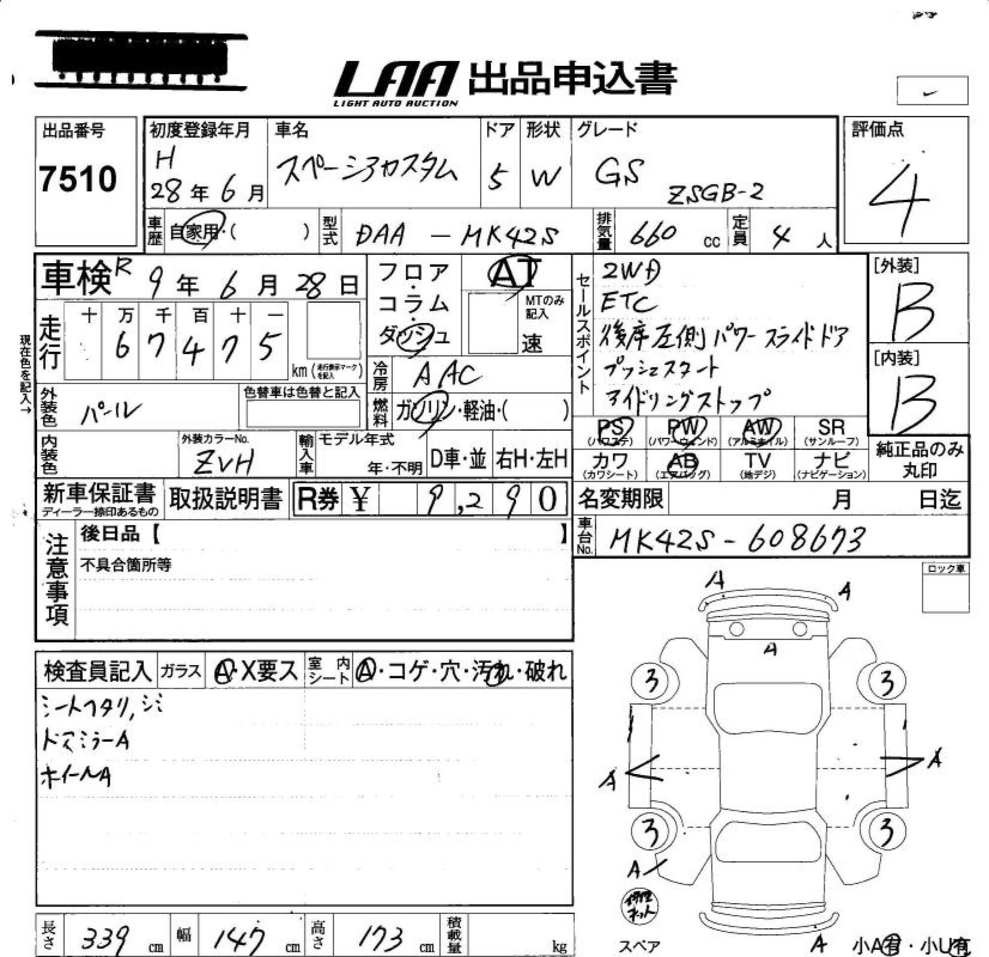 SUZUKI SPACIA CUSTOM - лот 7510