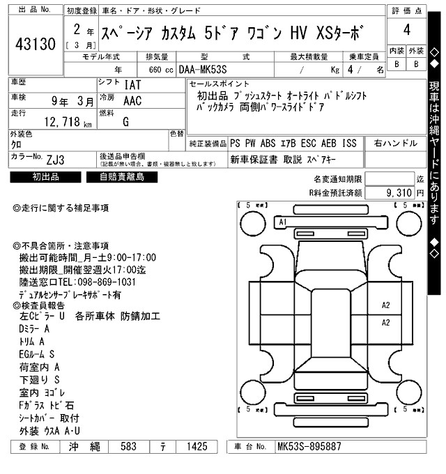 SUZUKI SPACIA CUSTOM - лот 43130