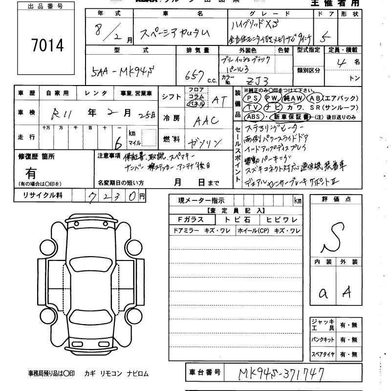 SUZUKI SPACIA CUSTOM - лот 7014