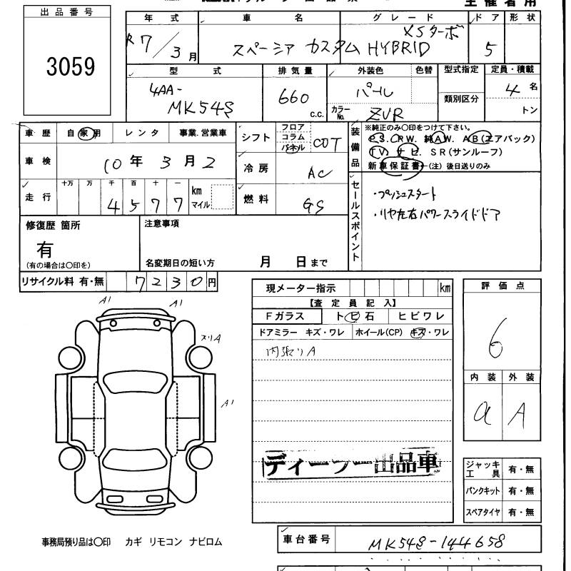 SUZUKI SPACIA CUSTOM - лот 3059