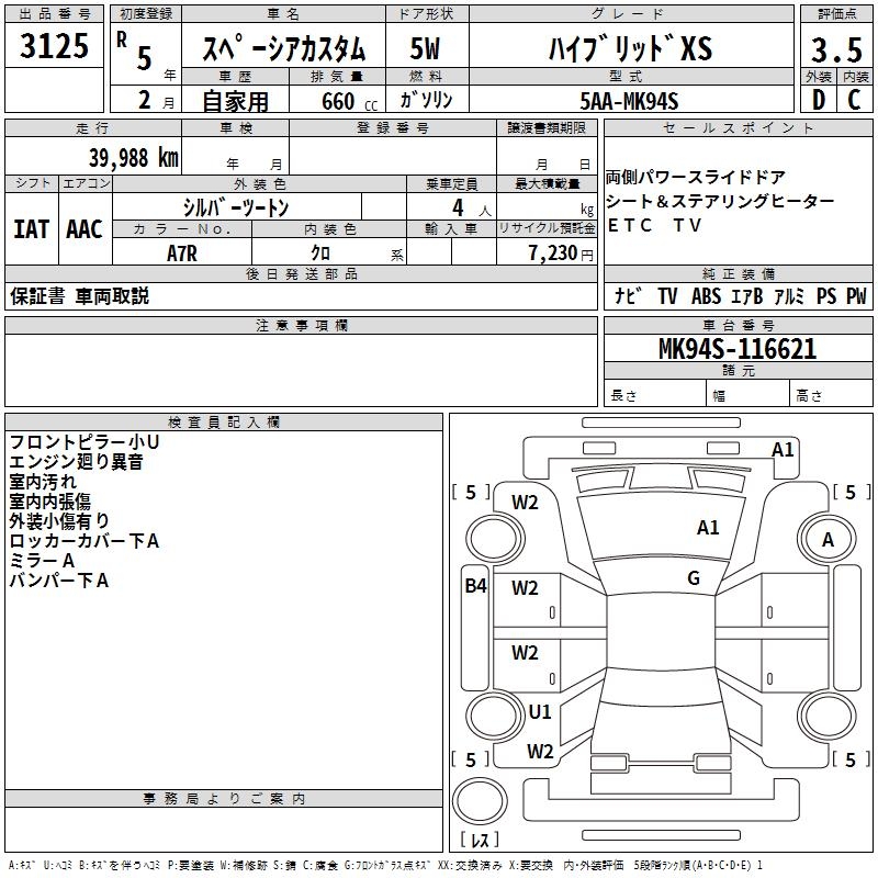 SUZUKI SPACIA CUSTOM - лот 3125