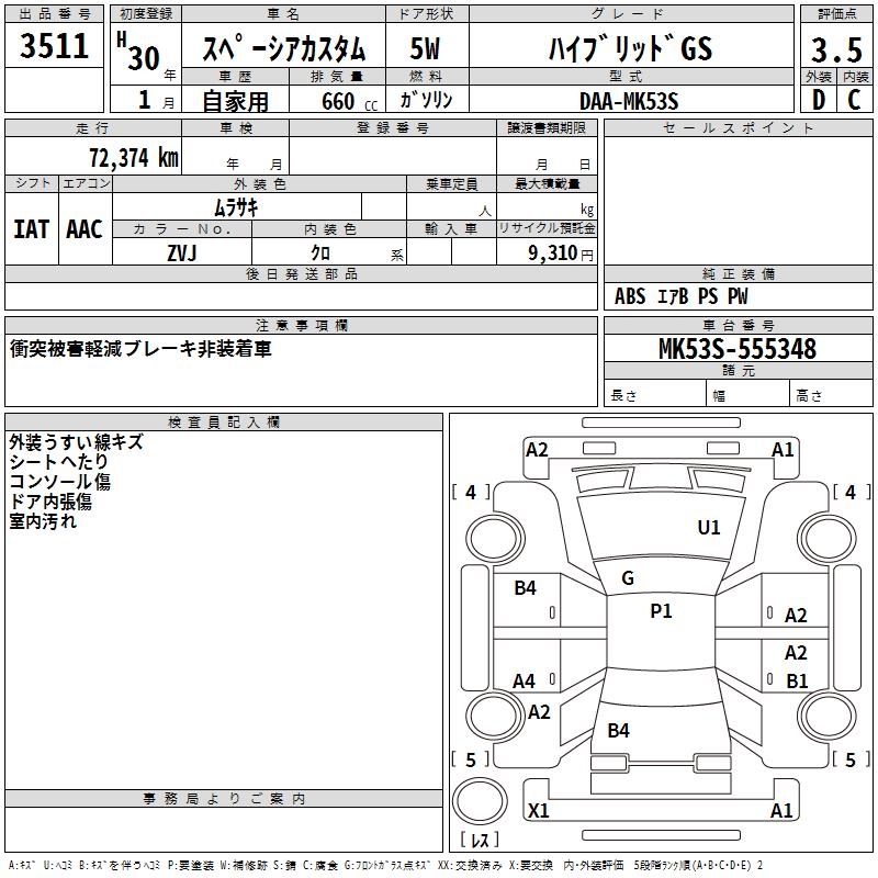 SUZUKI SPACIA CUSTOM - лот 3511