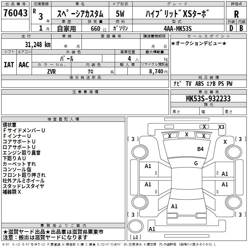 SUZUKI SPACIA CUSTOM - лот 76043