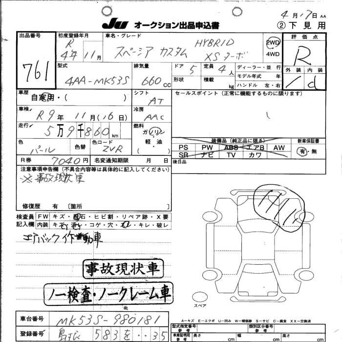 SUZUKI SPACIA CUSTOM - лот 761
