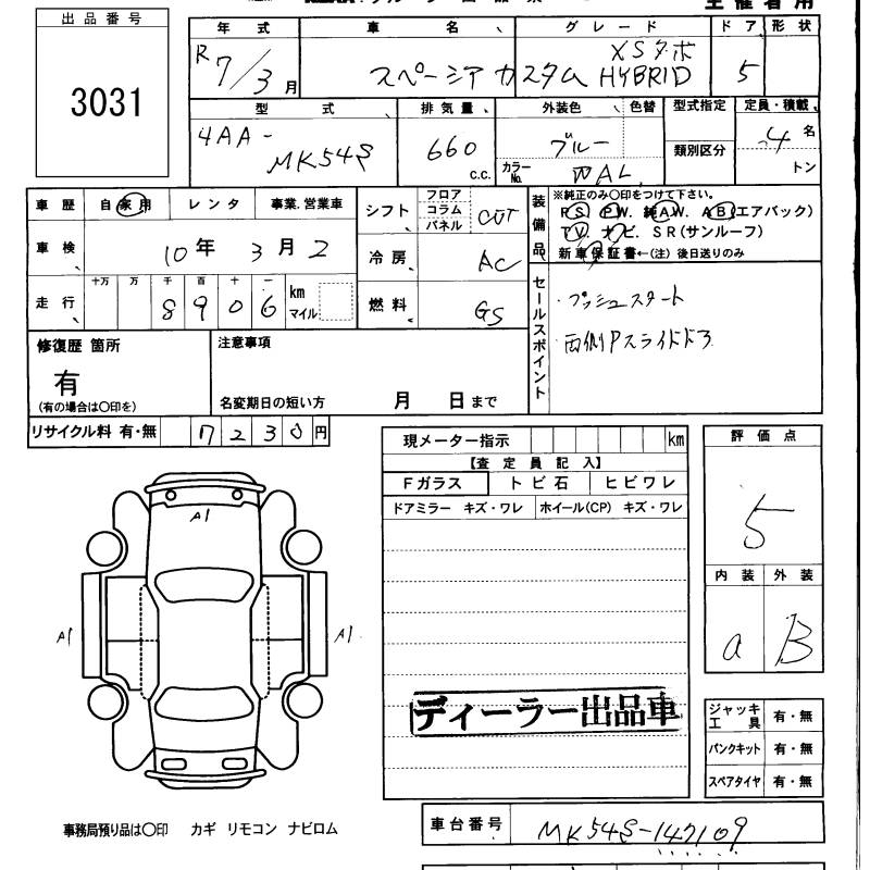 SUZUKI SPACIA CUSTOM - лот 3031