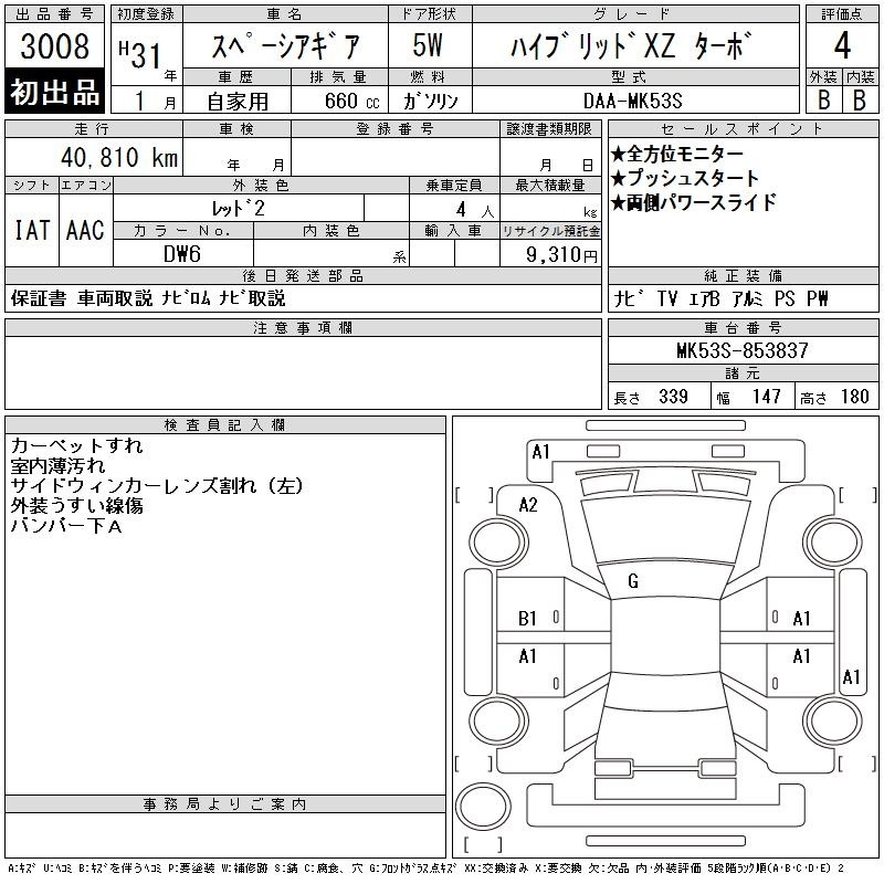 SUZUKI SPACIA GEAR - лот 3008