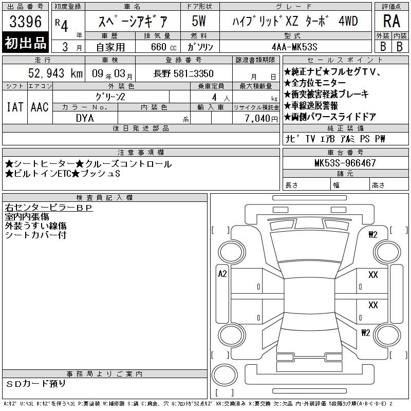 SUZUKI SPACIA GEAR - лот 3396