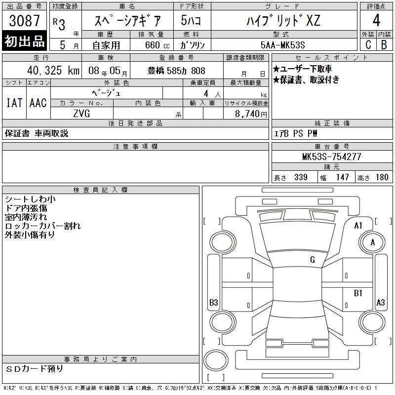 SUZUKI SPACIA GEAR - лот 3087
