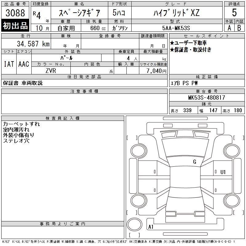 SUZUKI SPACIA GEAR - лот 3088