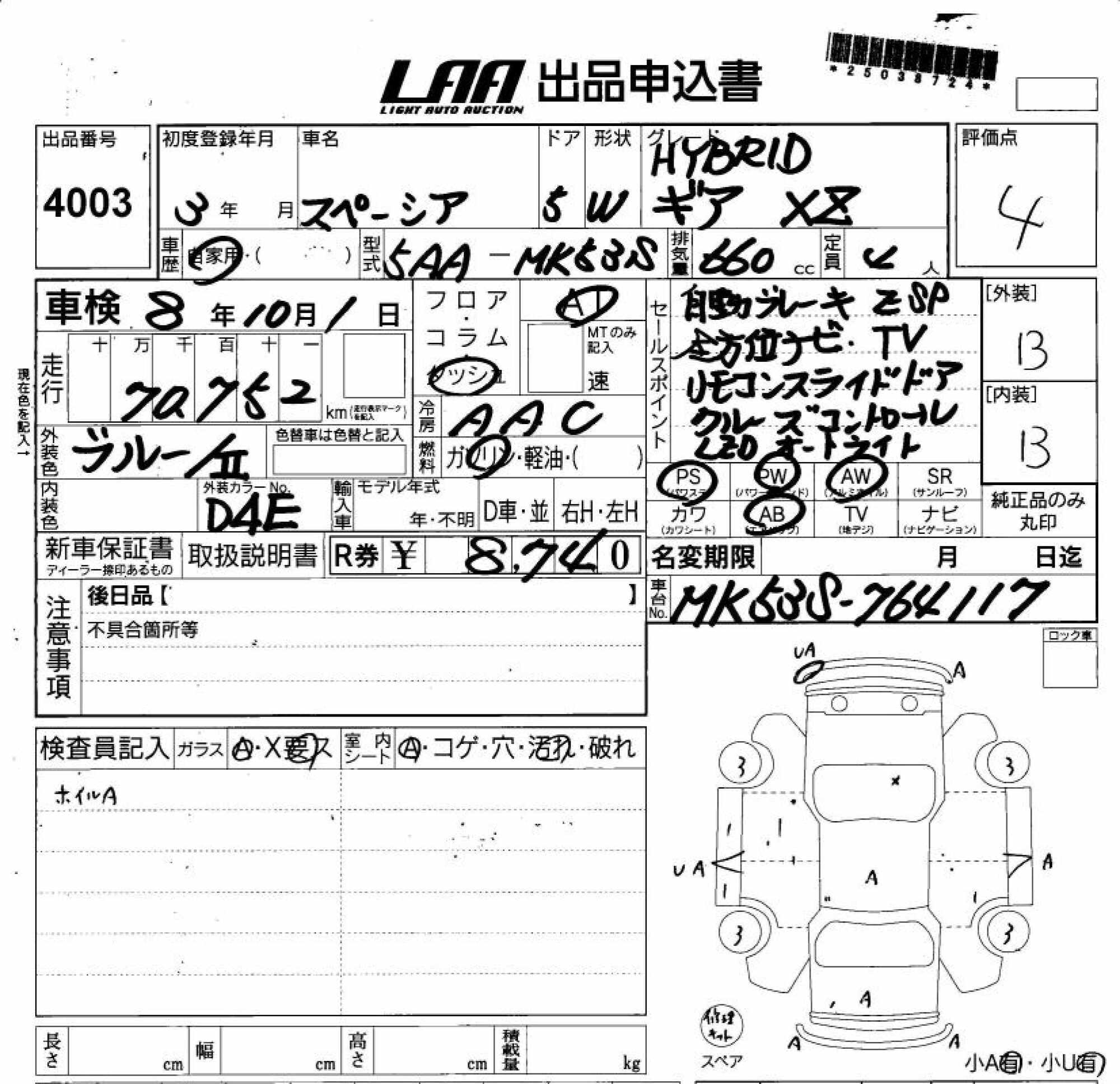 SUZUKI SPACIA GEAR - лот 4003