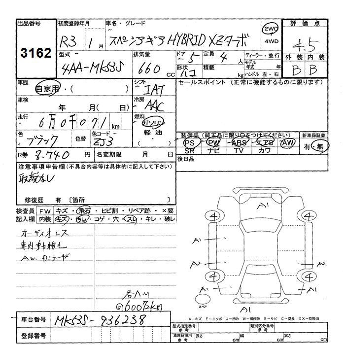 SUZUKI SPACIA GEAR - лот 3162