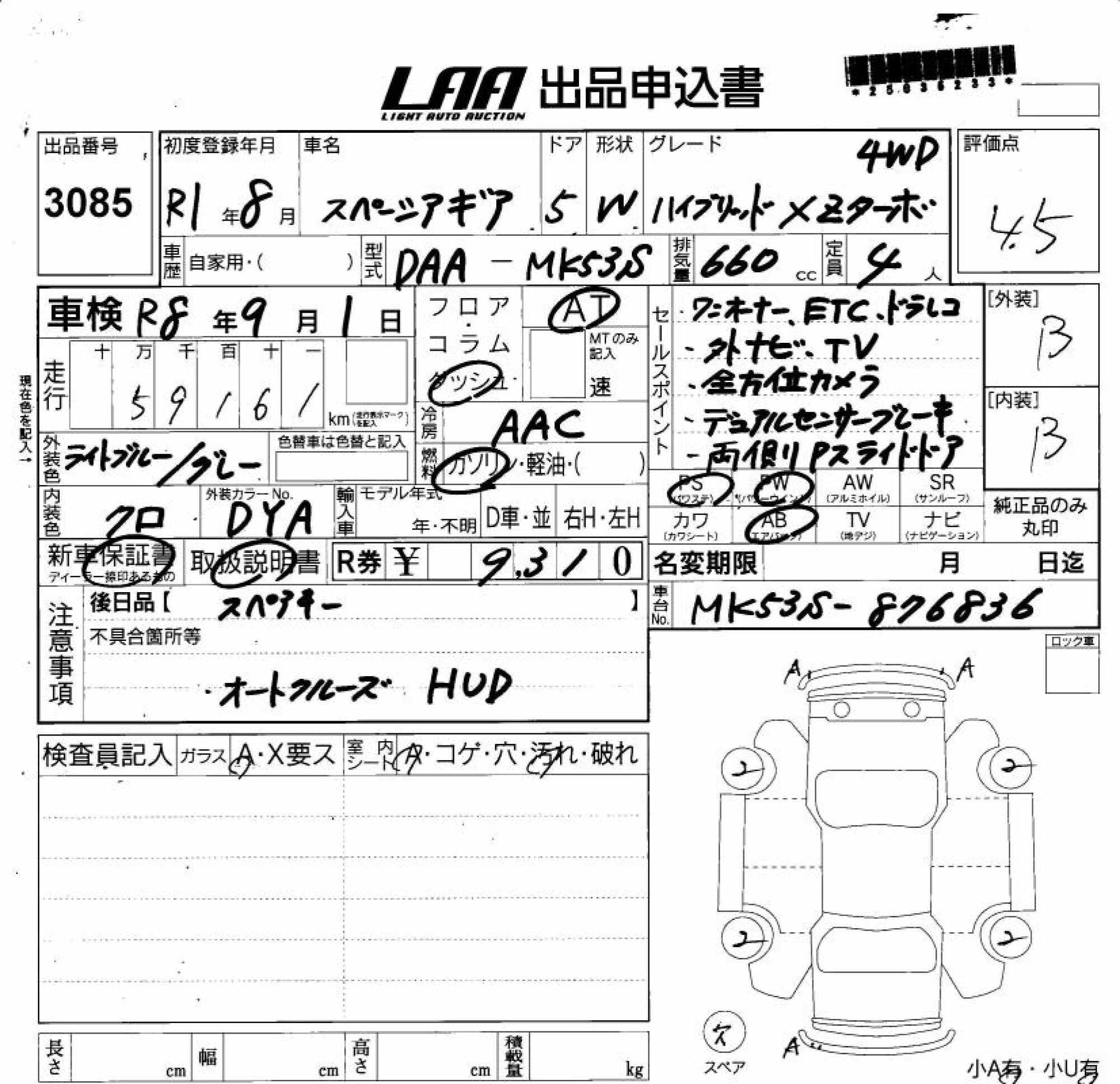 SUZUKI SPACIA GEAR - лот 3085