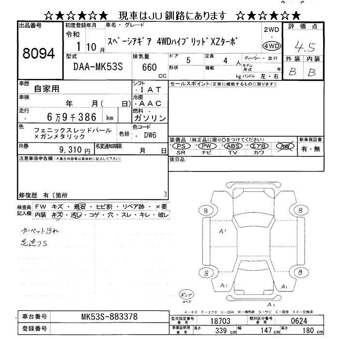 Все аукционы SUZUKI SPACIA GEAR