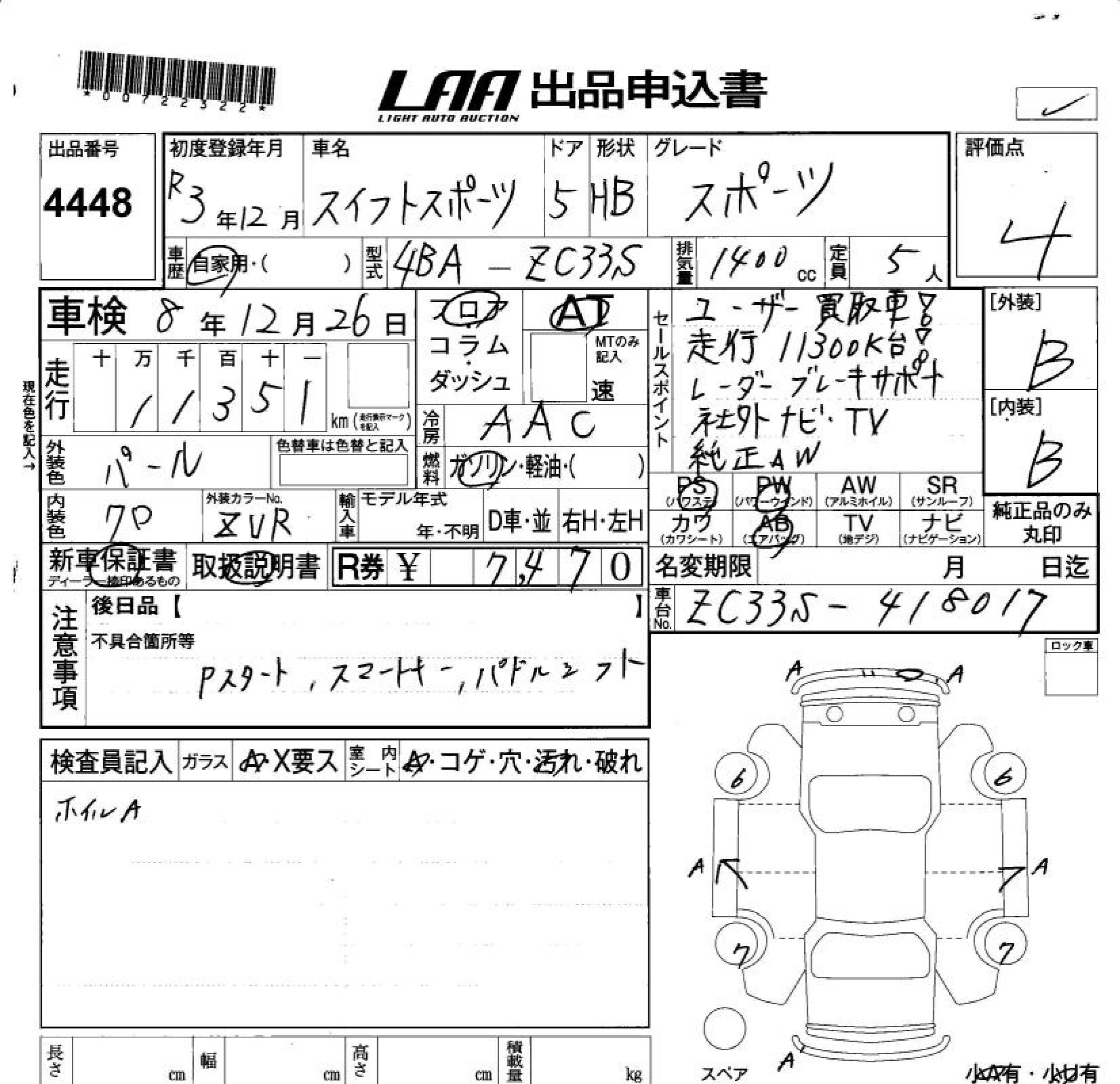 SUZUKI SWIFT SPORTS - лот 4448