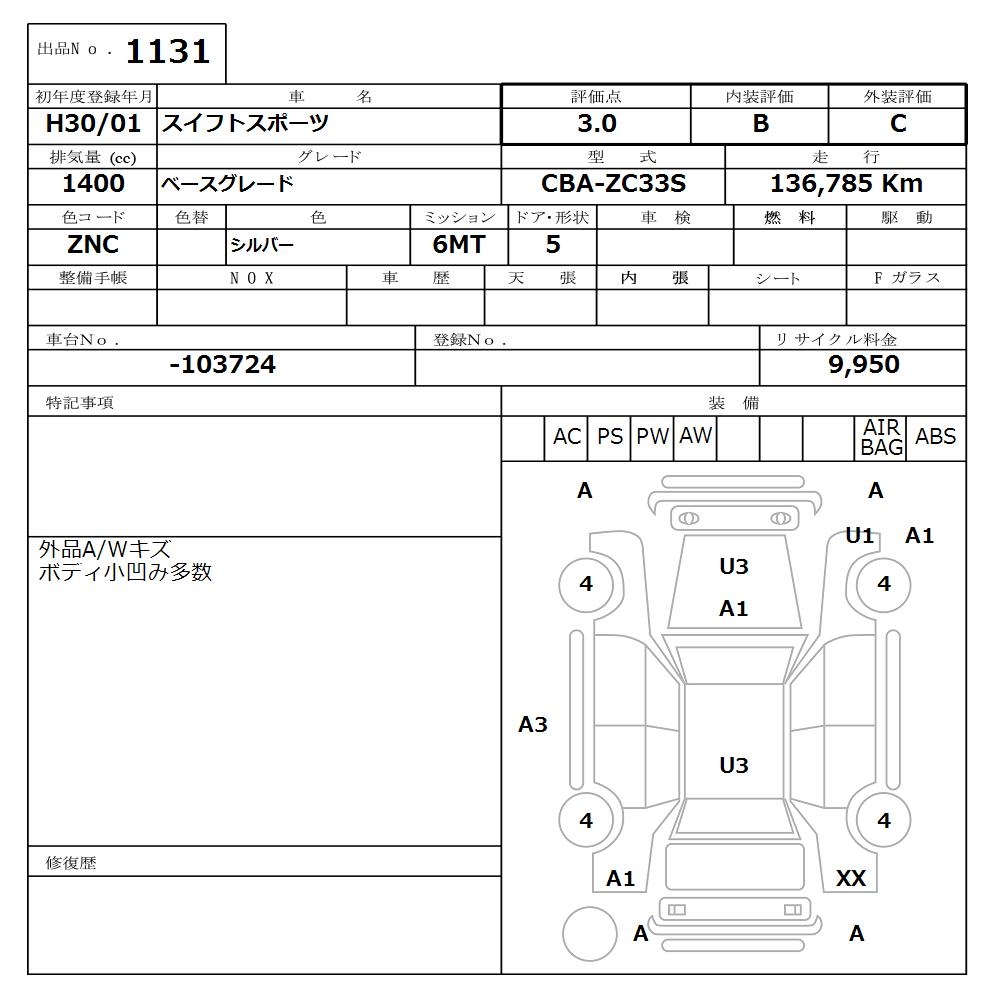 SUZUKI SWIFT SPORTS - лот 1131
