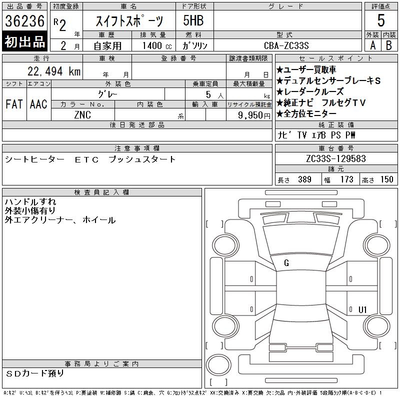 SUZUKI SWIFT SPORTS - лот 36236