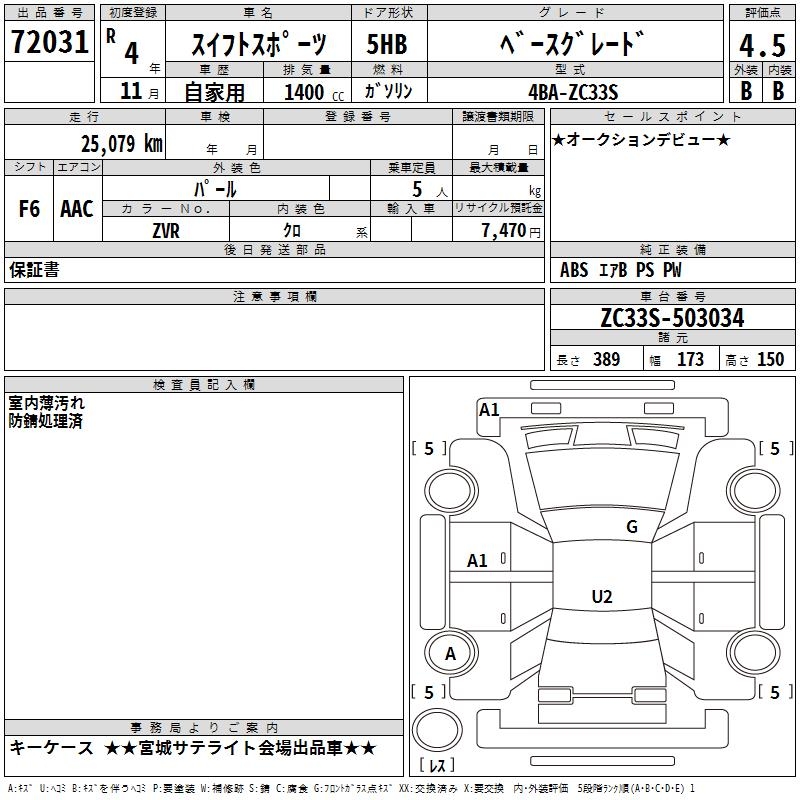 SUZUKI SWIFT SPORTS BASE GRADE - лот 72031