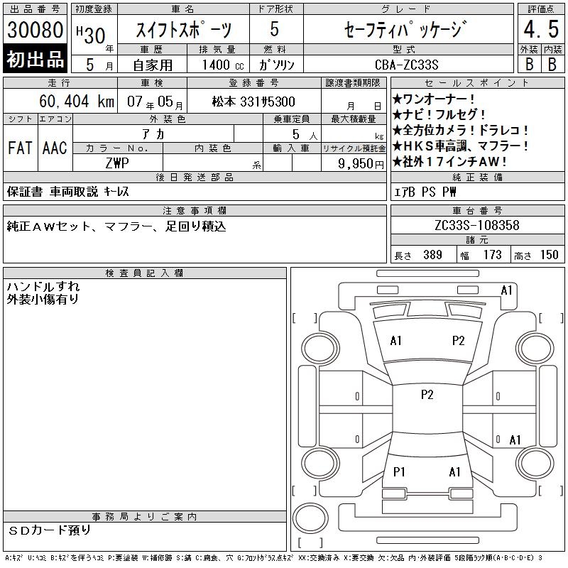 SUZUKI SWIFT SPORTS SAFETY PACKAGE - лот 30080