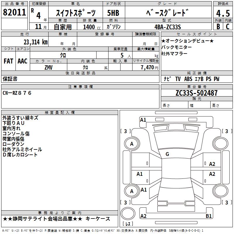 SUZUKI SWIFT SPORTS BASE GRADE - лот 82011