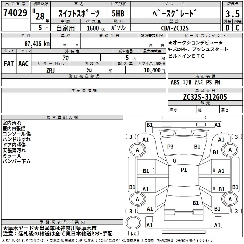 SUZUKI SWIFT SPORTS BASE GRADE - лот 74029