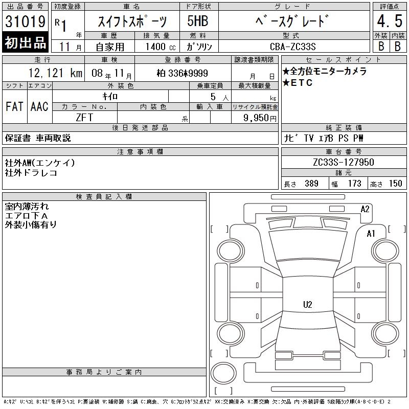SUZUKI SWIFT SPORTS BASE GRADE - лот 31019