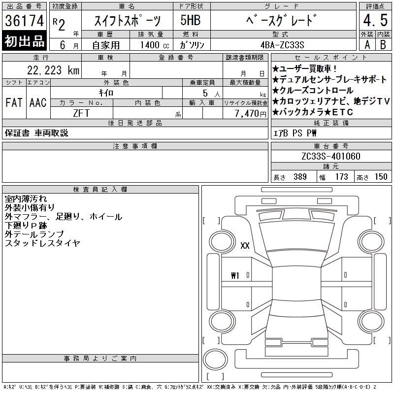 SUZUKI SWIFT SPORTS BASE GRADE - лот 36174