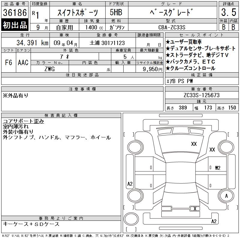 SUZUKI SWIFT SPORTS BASE GRADE - лот 36186