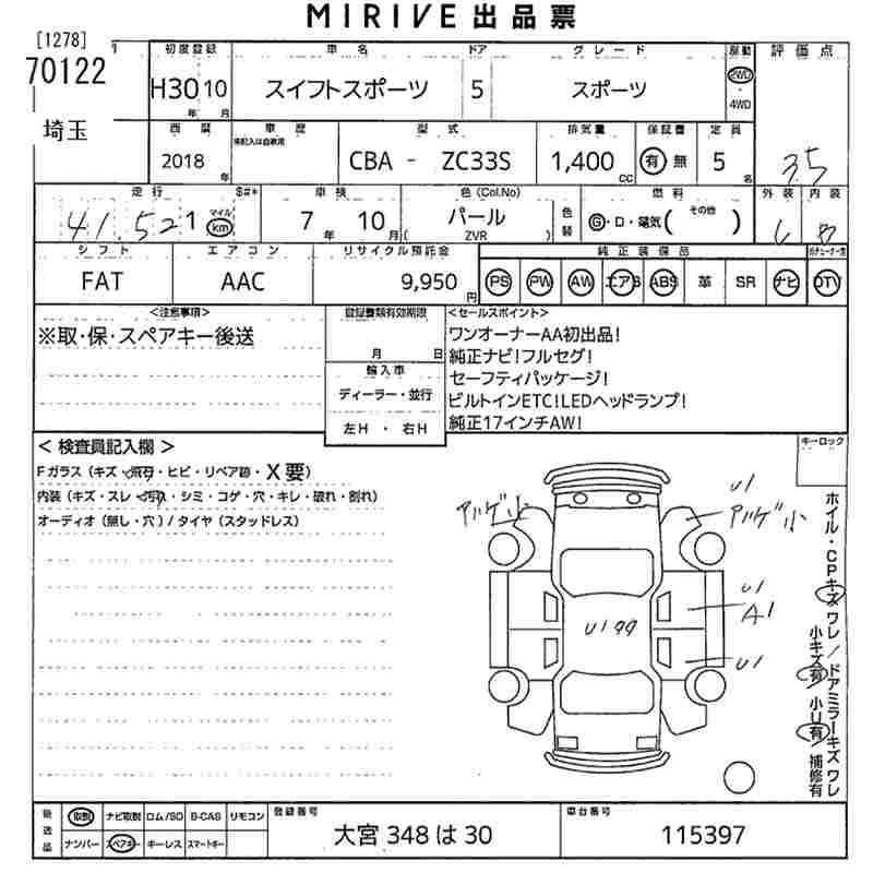SUZUKI SWIFT SPORTS SPORT - лот 70122