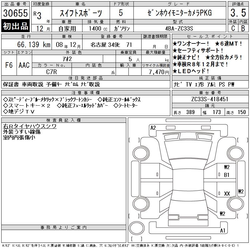 SUZUKI SWIFT SPORTS ZEN HOWE I MONITOR CAMERA PKG - лот 30655