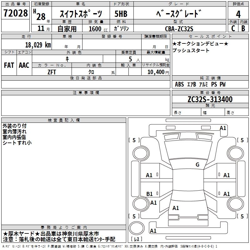 SUZUKI SWIFT SPORTS BASE GRADE - лот 72028