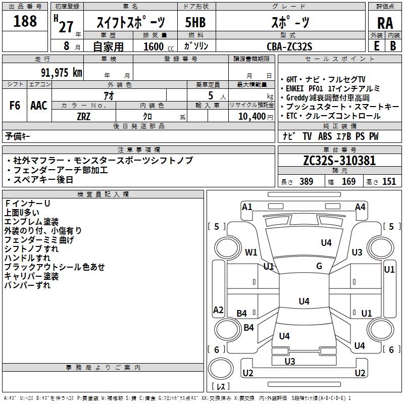 SUZUKI SWIFT SPORTS SPORT - лот 188