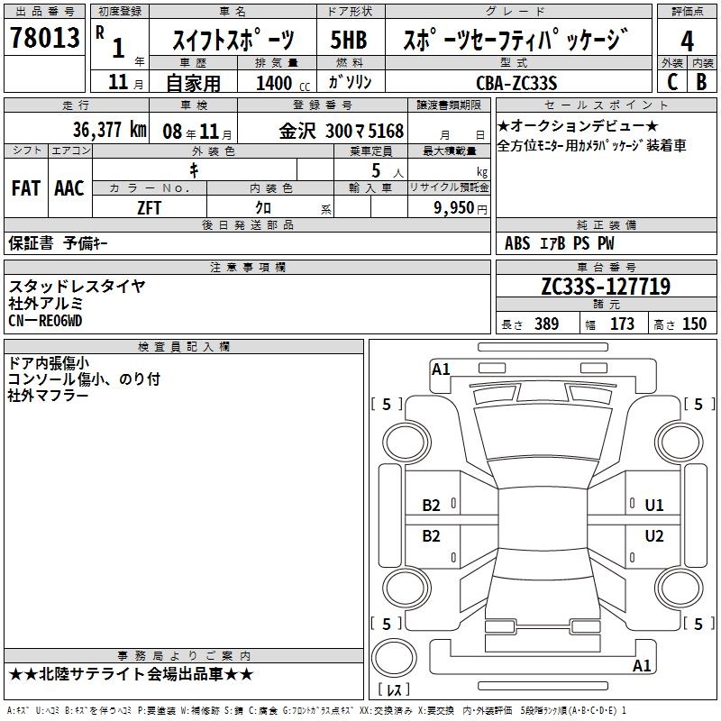 SUZUKI SWIFT SPORTS SPORT SAFETY PACKAGE - лот 78013