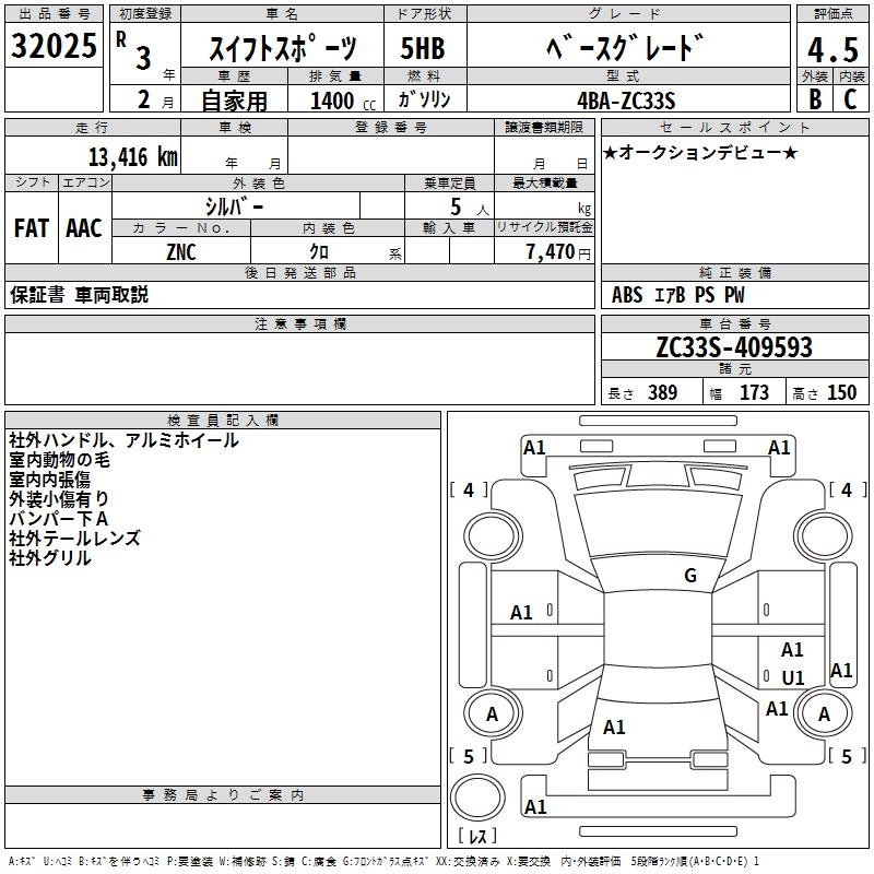 SUZUKI SWIFT SPORTS BASE GRADE - лот 32025