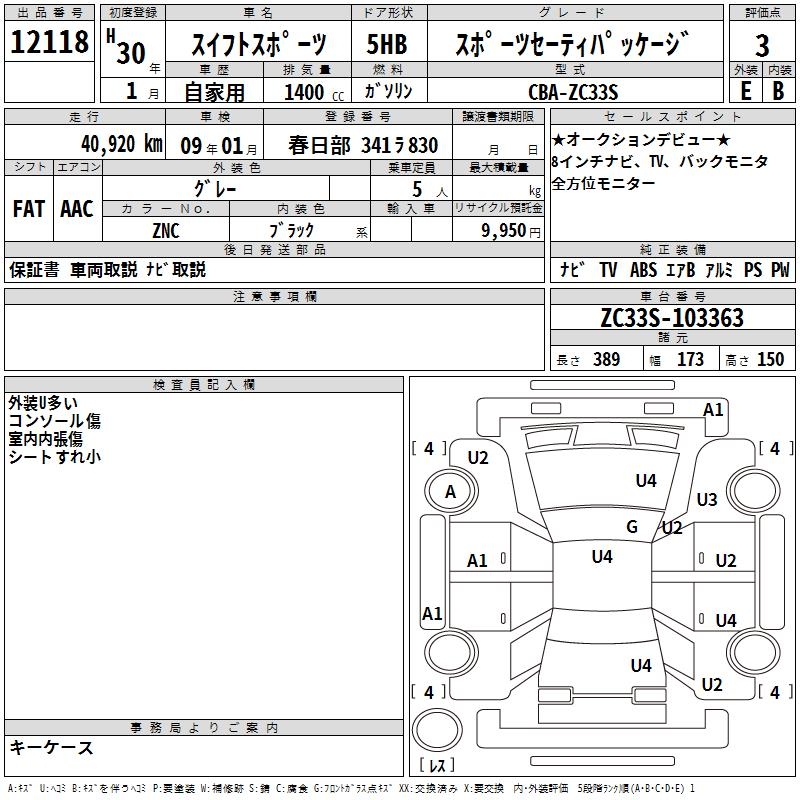 SUZUKI SWIFT SPORTS SPORT SE-TI PACKAGE - лот 12118