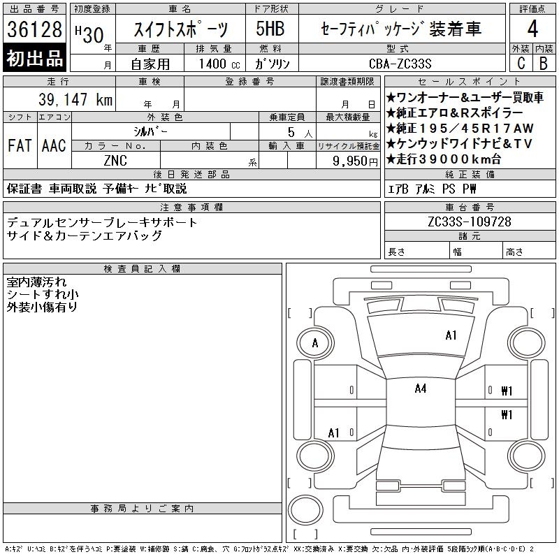 SUZUKI SWIFT SPORTS SAFETY PACKAGE SOU TEA K CAR - лот 36128