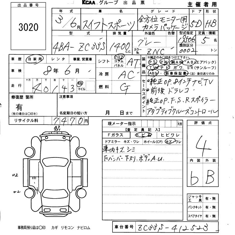 SUZUKI SWIFT SPORTS ALL PERSON . MONITOR . CAMERA PACK - лот 3020