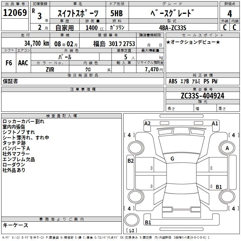 SUZUKI SWIFT SPORTS BASE GRADE - лот 12069