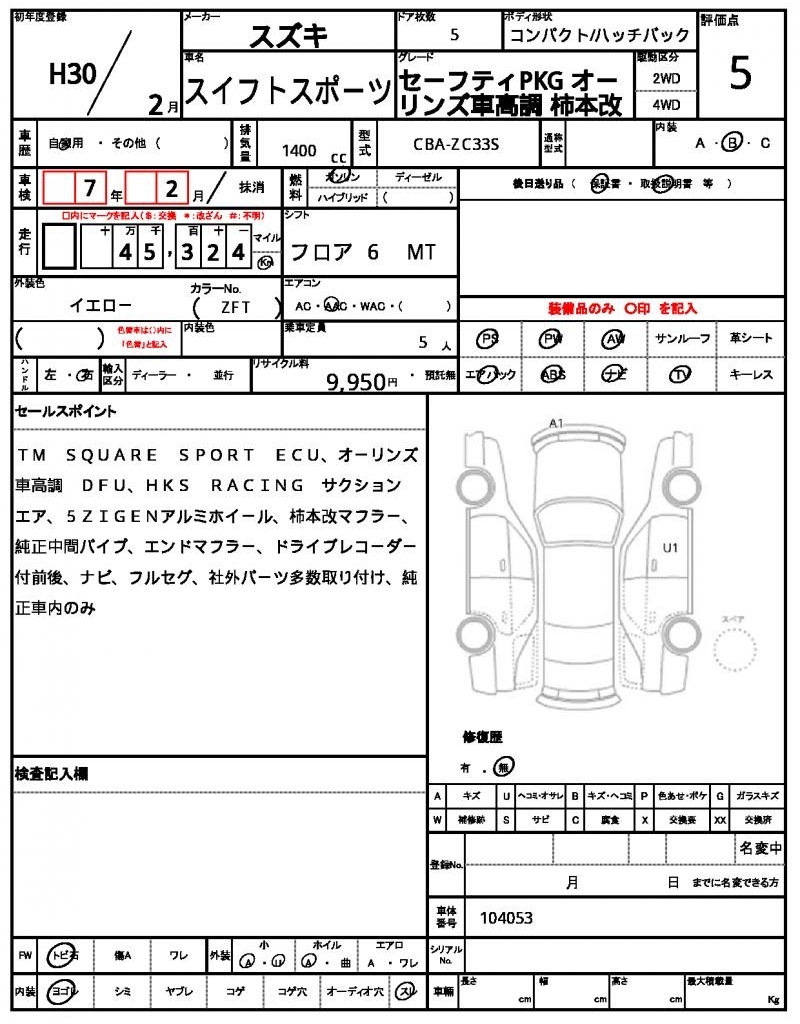 SUZUKI SWIFT SPORTS - лот 47422