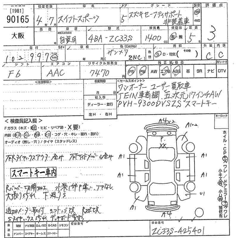 SUZUKI SWIFT SPORTS SUZUKI SAFETY SUPPORT HISOU TEA K CAR - лот 90165