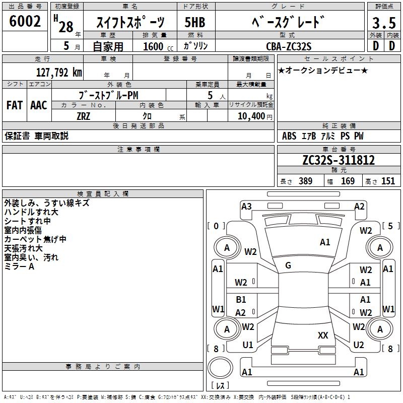 SUZUKI SWIFT SPORTS BASE GRADE - лот 6002