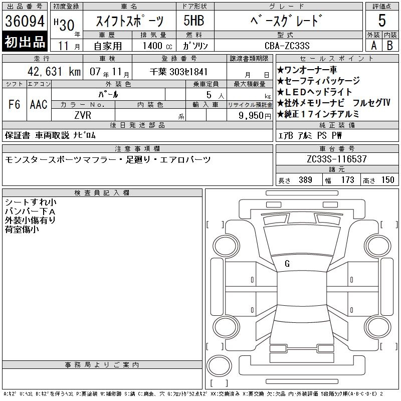 SUZUKI SWIFT SPORTS BASE GRADE - лот 36094