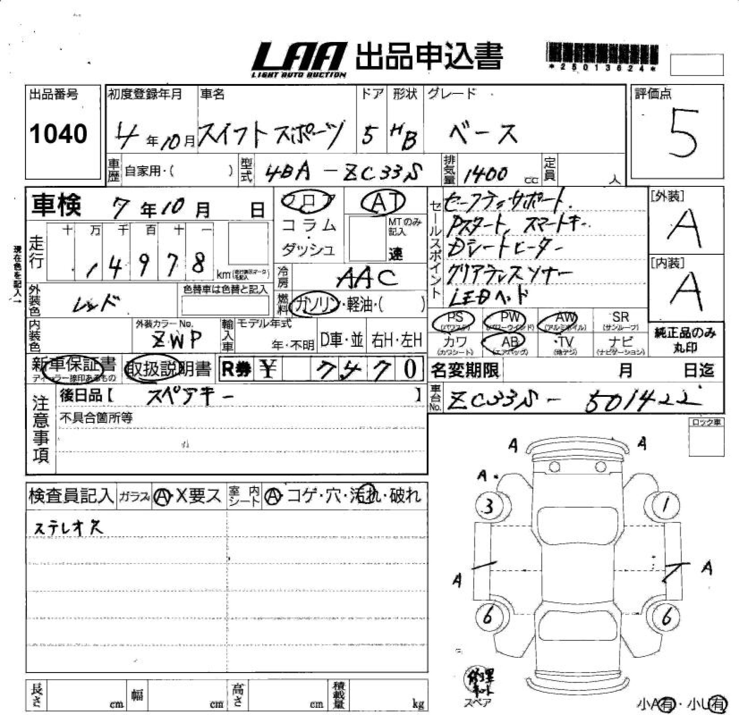 SUZUKI SWIFT SPORTS BASE - лот 1040