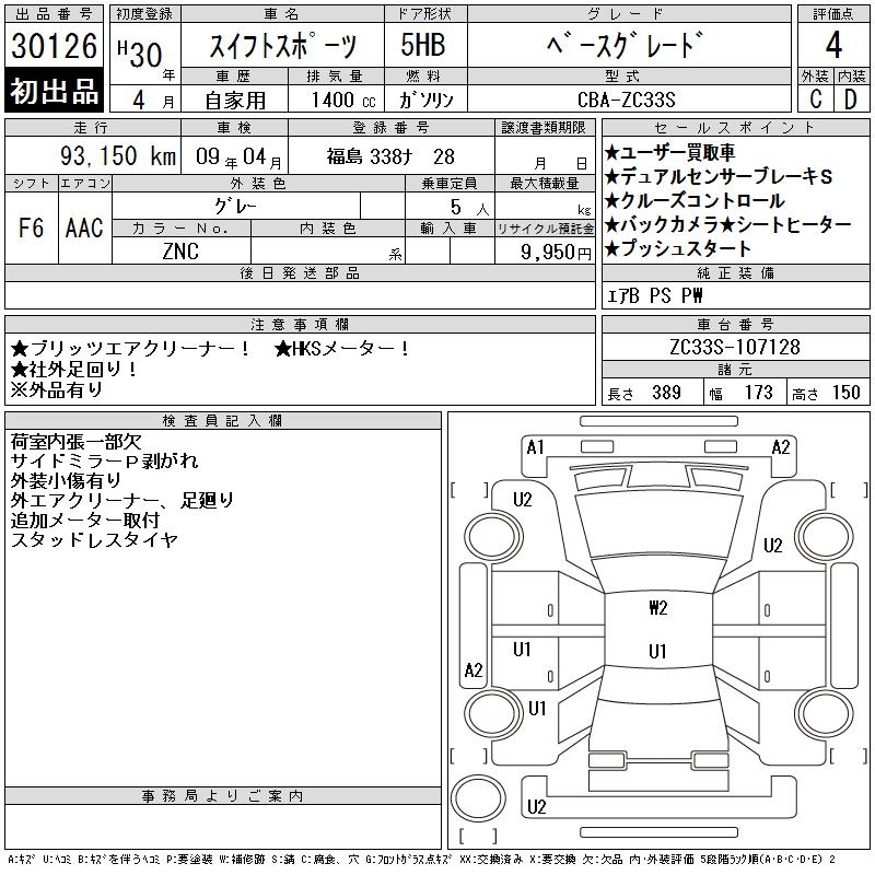 SUZUKI SWIFT SPORTS BASE GRADE - лот 30126