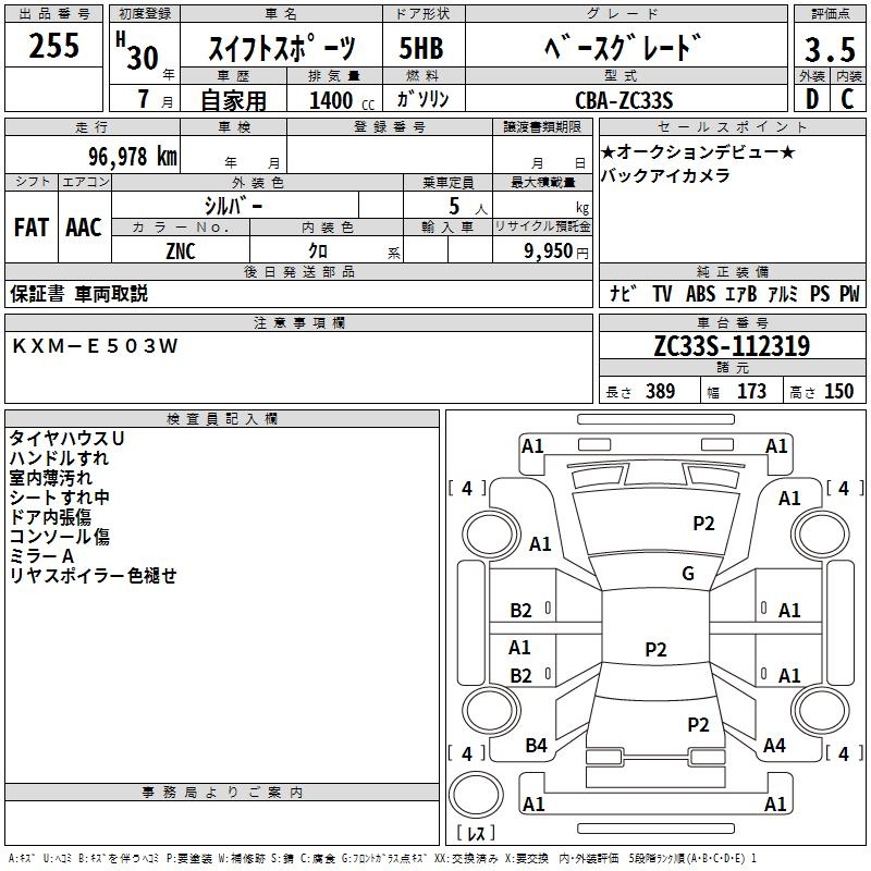 SUZUKI SWIFT SPORTS BASE GRADE - лот 255