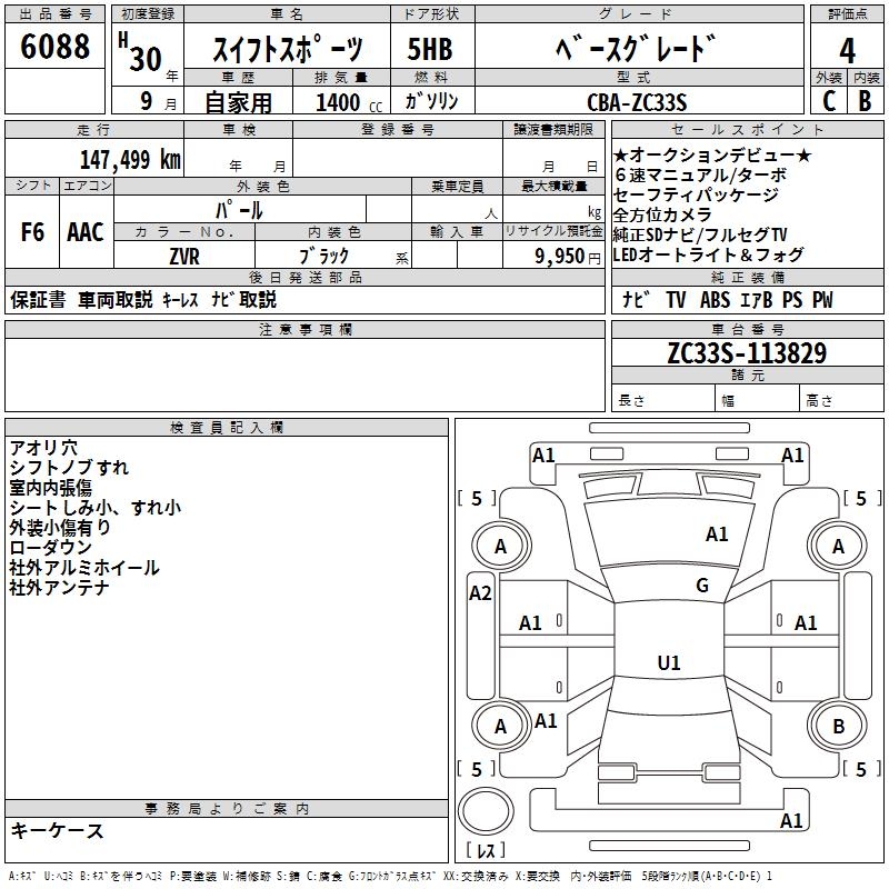 SUZUKI SWIFT SPORTS BASE GRADE - лот 6088