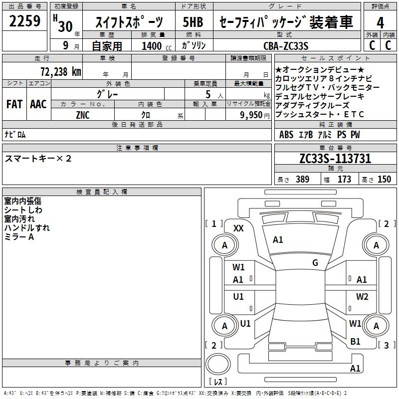 SUZUKI SWIFT SPORTS SAFETY PACKAGE SOU TEA K CAR - лот 2259