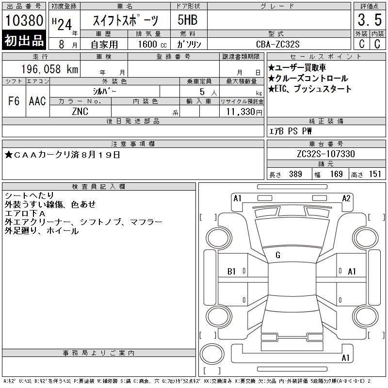 Все аукционы SUZUKI SWIFT SPORTS