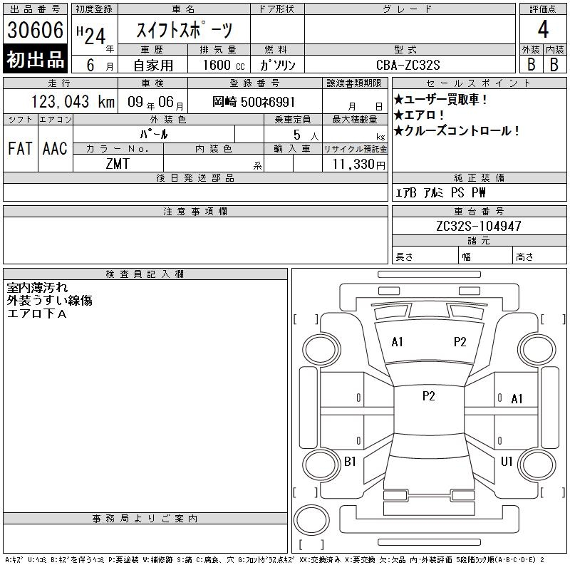 Все аукционы SUZUKI SWIFT SPORTS