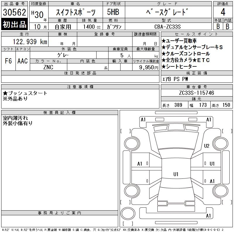 SUZUKI SWIFT SPORTS BASE GRADE - лот 30562