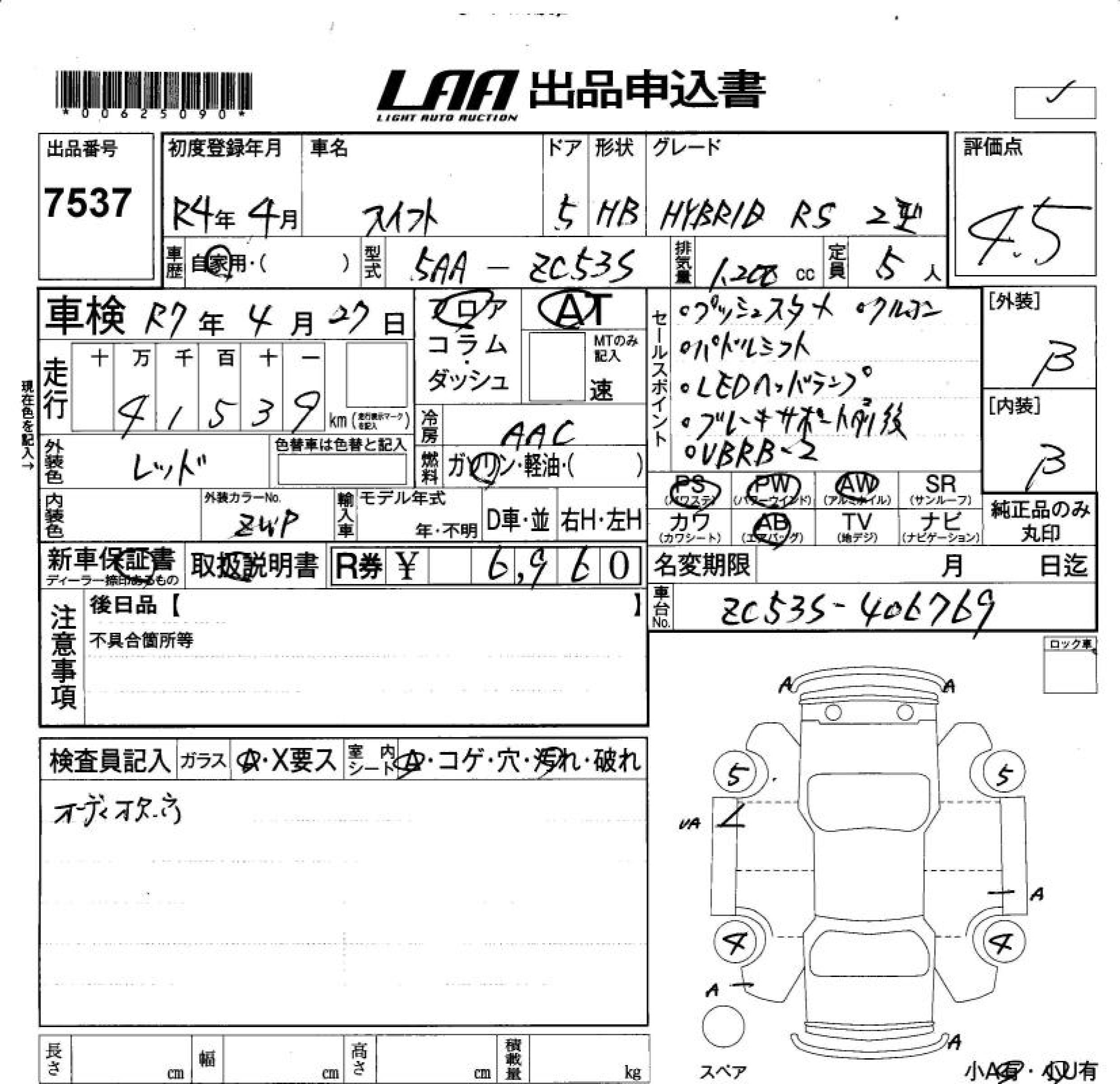 SUZUKI SWIFT HYBRID RS 2 TYPE - лот 7537